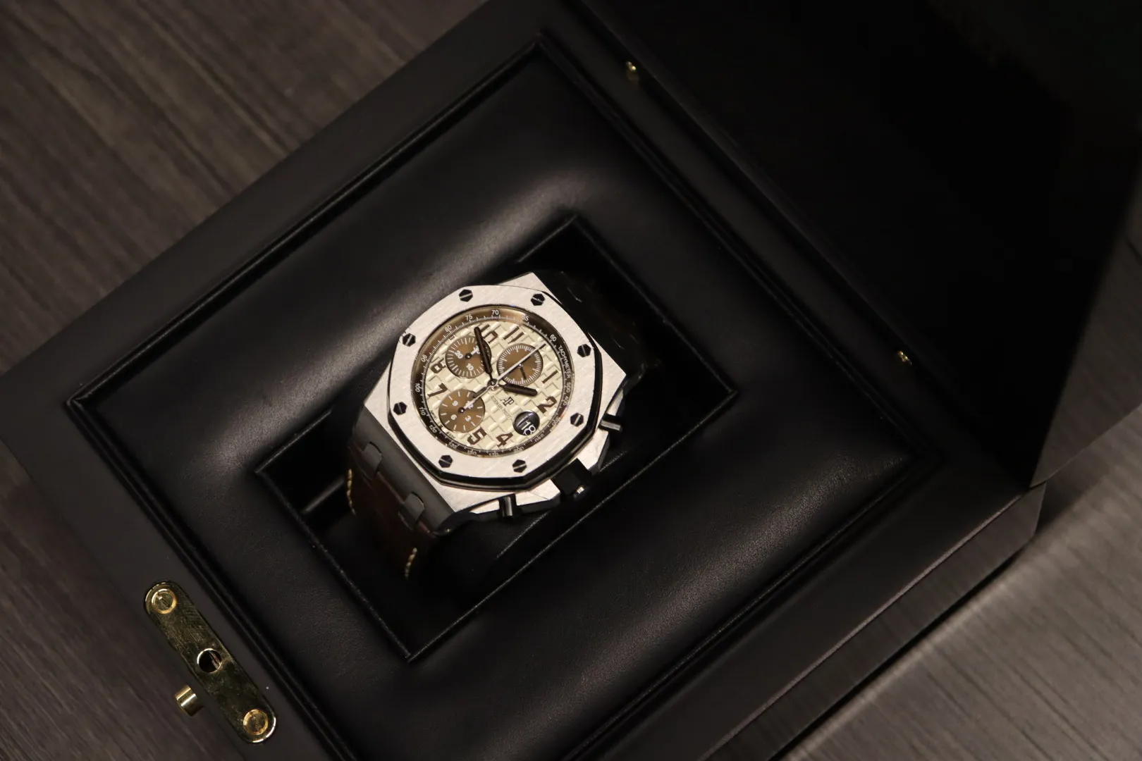 Audemars Piguet Royal Oak Offshore “Safari” 42mm Ref. 26470ST.OO.A801CR.01 – Stainless Steel – Ivory Dial – Automatic – Circa 2015 – Box