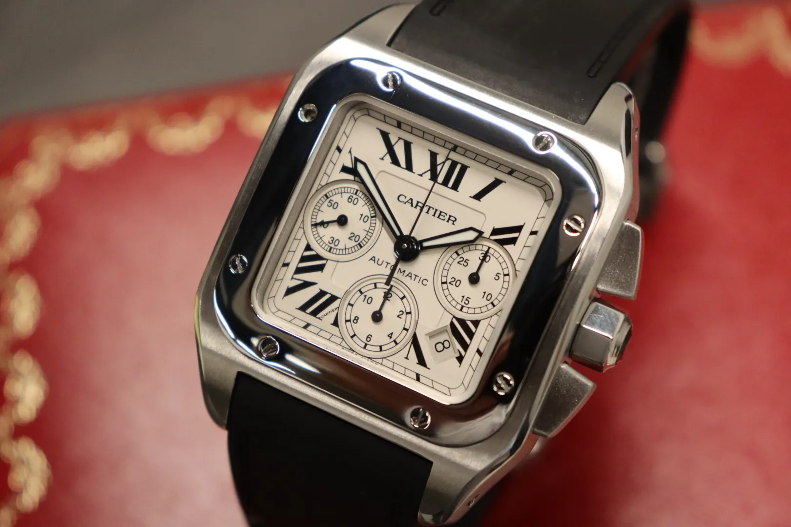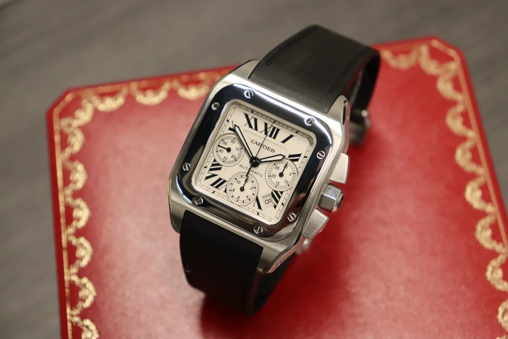Bold and instantly recognisable, the Cartier Santos 100 XL Chronograph (Ref. 2740) is a modern interpretation of one of Cartier’s most iconic designs, combining heritage aesthetics with sporty functionality.