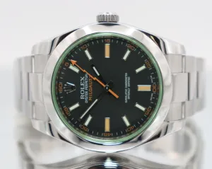 Rolex Milguass 116400GV Black Dial Green Glass Stainless Steel Box & Papers 2009