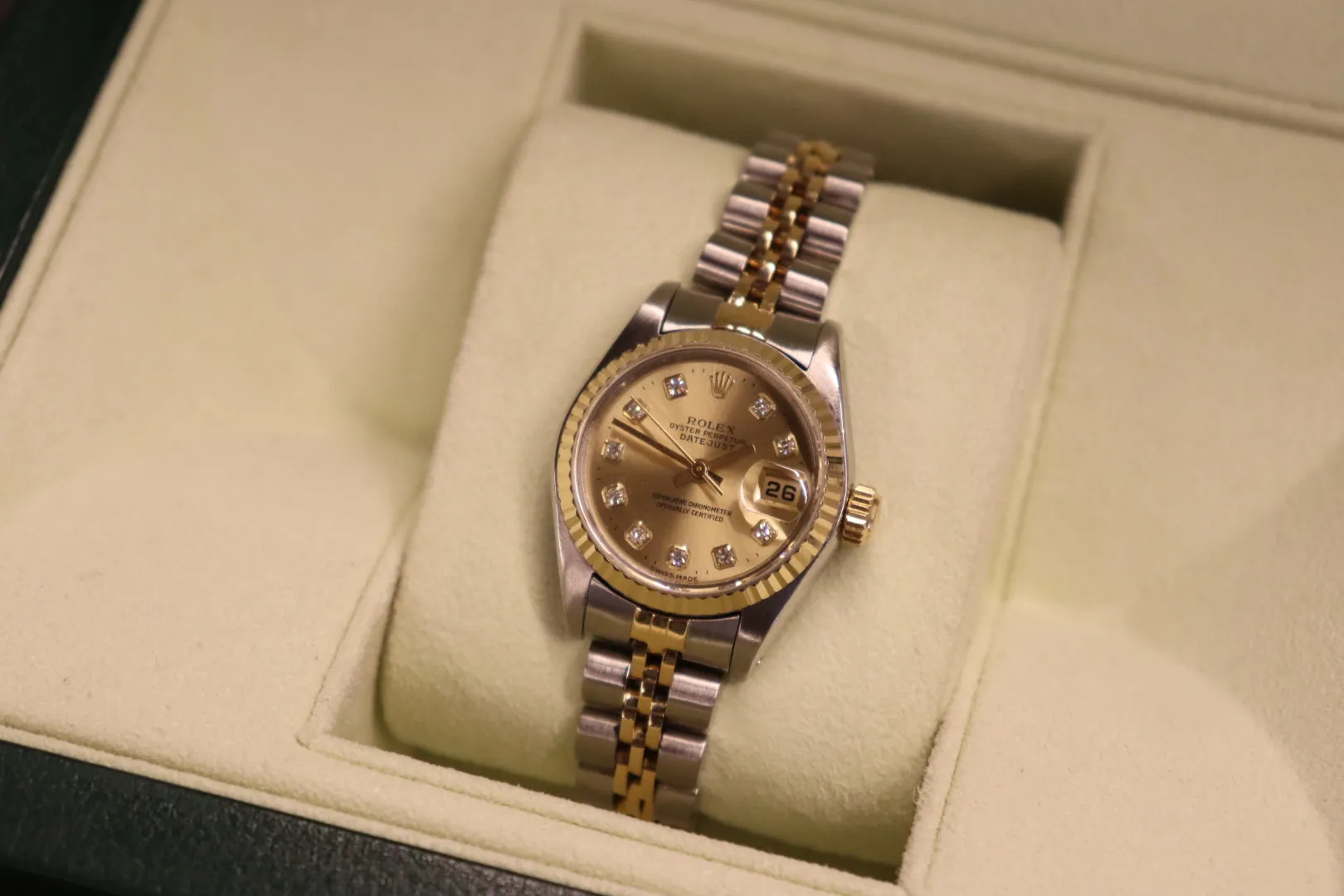 Rolex Lady-Datejust 26mm Ref. 69173 – Stainless Steel & 18ct Yellow Gold – Champagne Diamond Dial – Automatic – Circa 1985 – Box