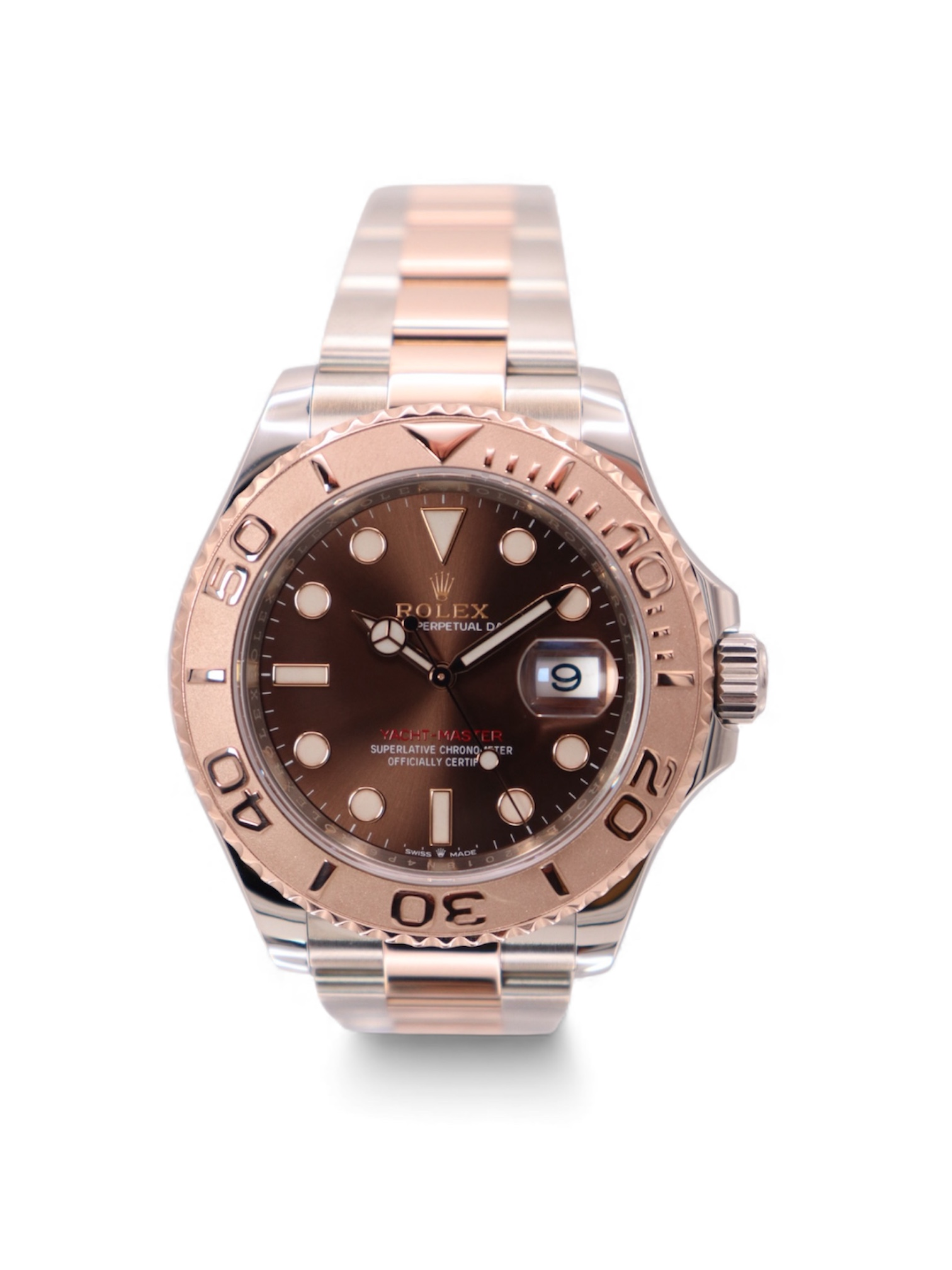The Rolex Yacht-Master 40 reference 126621 is a luxurious yet sporty timepiece, combining Rolex’s robust engineering with refined elegance. Crafted in Oystersteel and 18k Everose gold, this model offers a warm, sophisticated aesthetic that stands apart from traditional stainless-steel sports watches.This example features the highly desirable chocolate brown dial, beautifully complemented by luminous round hour markers and matching Everose gold accents. The bidirectional rotatable bezel in solid 18k Everose gold adds both functionality and visual impact, making this watch equally suited to daily wear or more formal occasions.Powered by the Rolex calibre, the movement delivers exceptional accuracy, reliability, and a 70-hour power reserve, representing Rolex’s latest generation of automatic movements. Presented in good condition, this 2020 example comes complete with its original box and papers, adding strong collectability and peace of mind.Fully authenticated, Watch Register verified, and supplied with a 12-month TGL warranty, this Yacht-Master is an excellent opportunity to acquire a modern two-tone Rolex with timeless appeal.