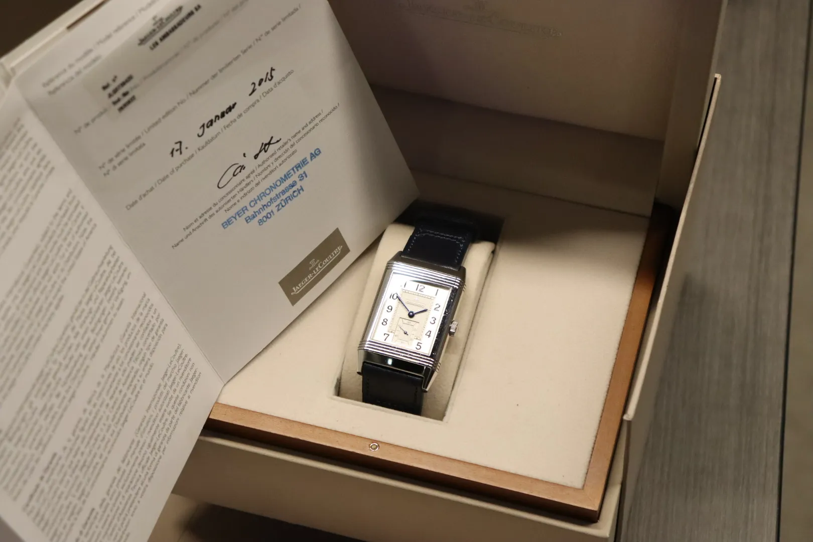 - Strap: New blue leather strap from Jaeger-LeCoultre boutique