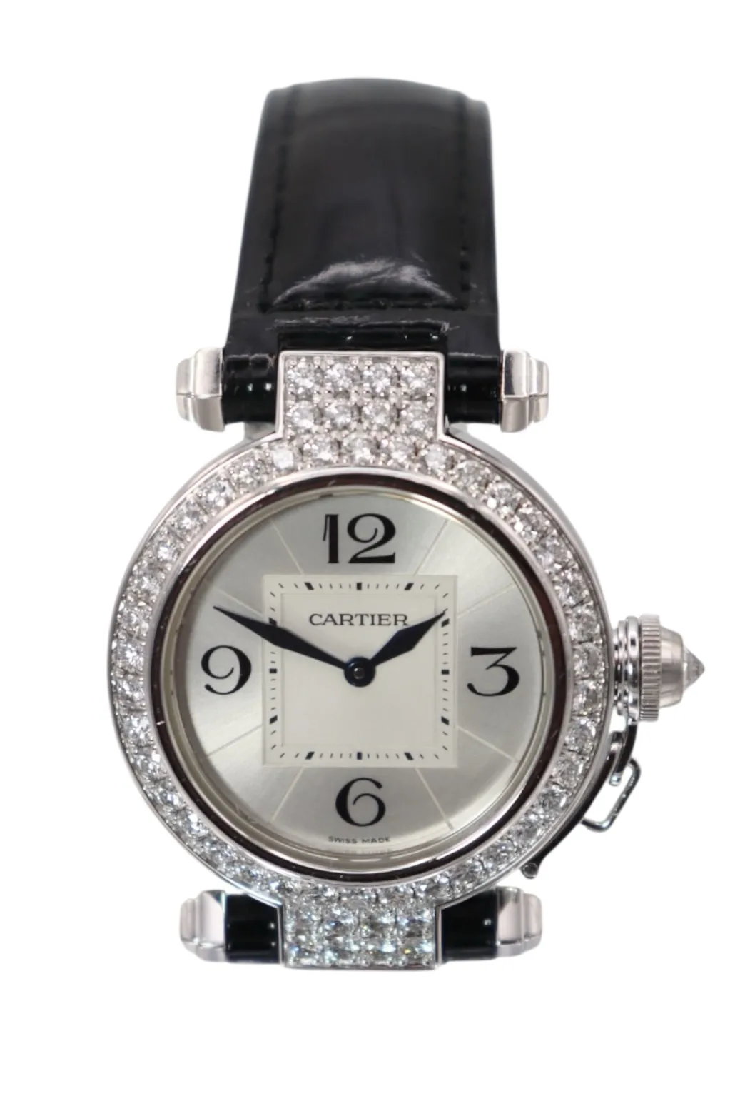 A luxurious and increasingly collectible Cartier, combining precious metal construction, factory diamond detailing, and iconic design — a perfect dress watch with timeless prestige.