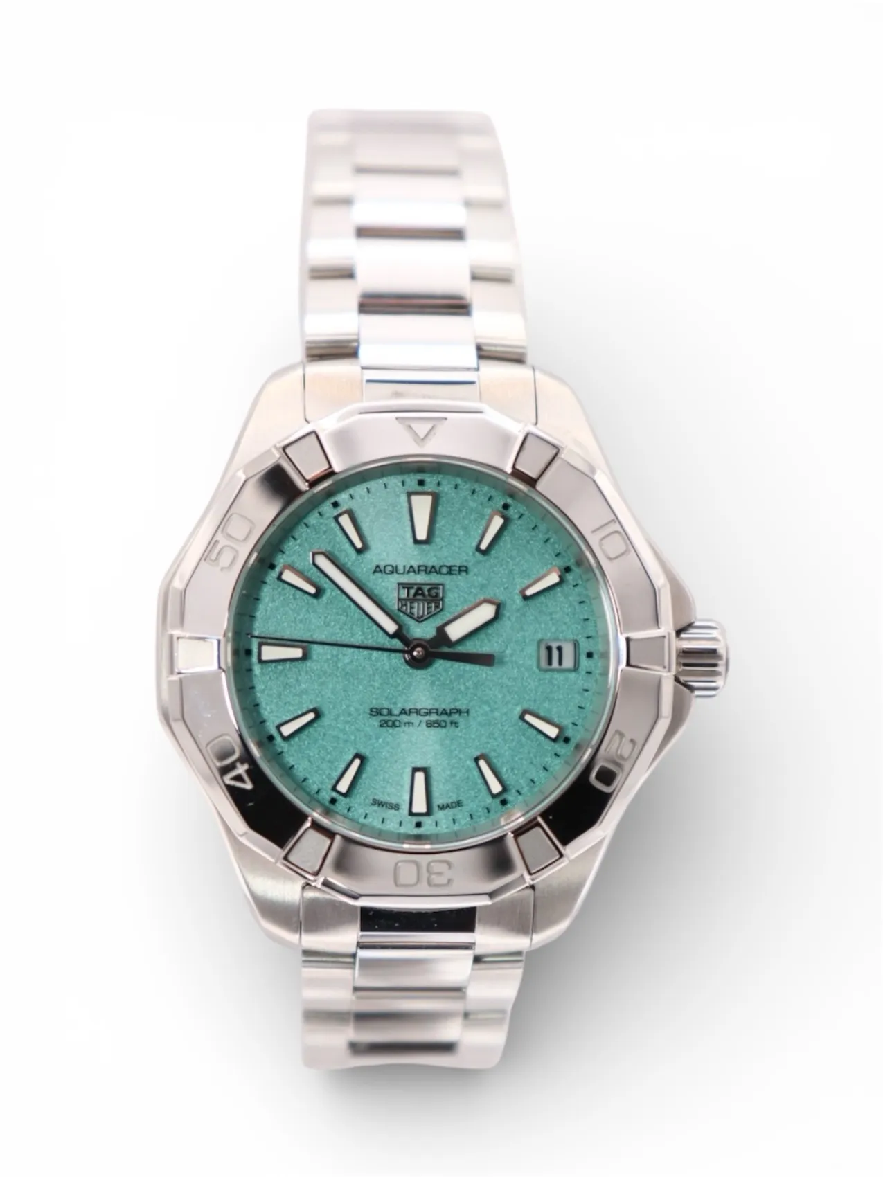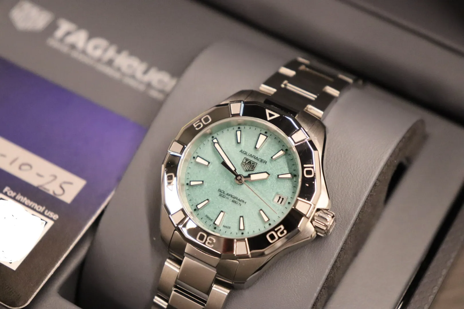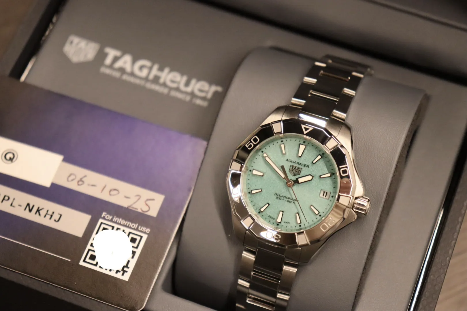 Ref. WBP1315.BA0005 | Stainless Steel Bracelet | Box & Papers | 12-Month TGL WarrantyModern, precise, and effortlessly versatile, the TAG Heuer Aquaracer Professional 200 Solargraph WBP1315.BA0005 is a contemporary luxury dive watch designed for the discerning woman. Powered by TAG Heuer’s innovative Solar Quartz movement, this 34mm model converts light into energy, providing reliable, low-maintenance performance while maintaining the bold Aquaracer aesthetic.The vibrant polar blue dial is enhanced by applied indexes and Super-LumiNova hands, ensuring exceptional legibility in all conditions. Protected by a sapphire crystal and framed by a stainless steel unidirectional 60-minute bezel, the design blends durability with sophisticated style. The integrated stainless steel bracelet with deployant clasp completes the look, offering comfort and elegance for daily wear.Presented in excellent condition, this 2025 example comes as a full set with original box and papers, has been verified via Watch Register, and is backed by a 12-month Time Group London warranty for complete peace of mind.