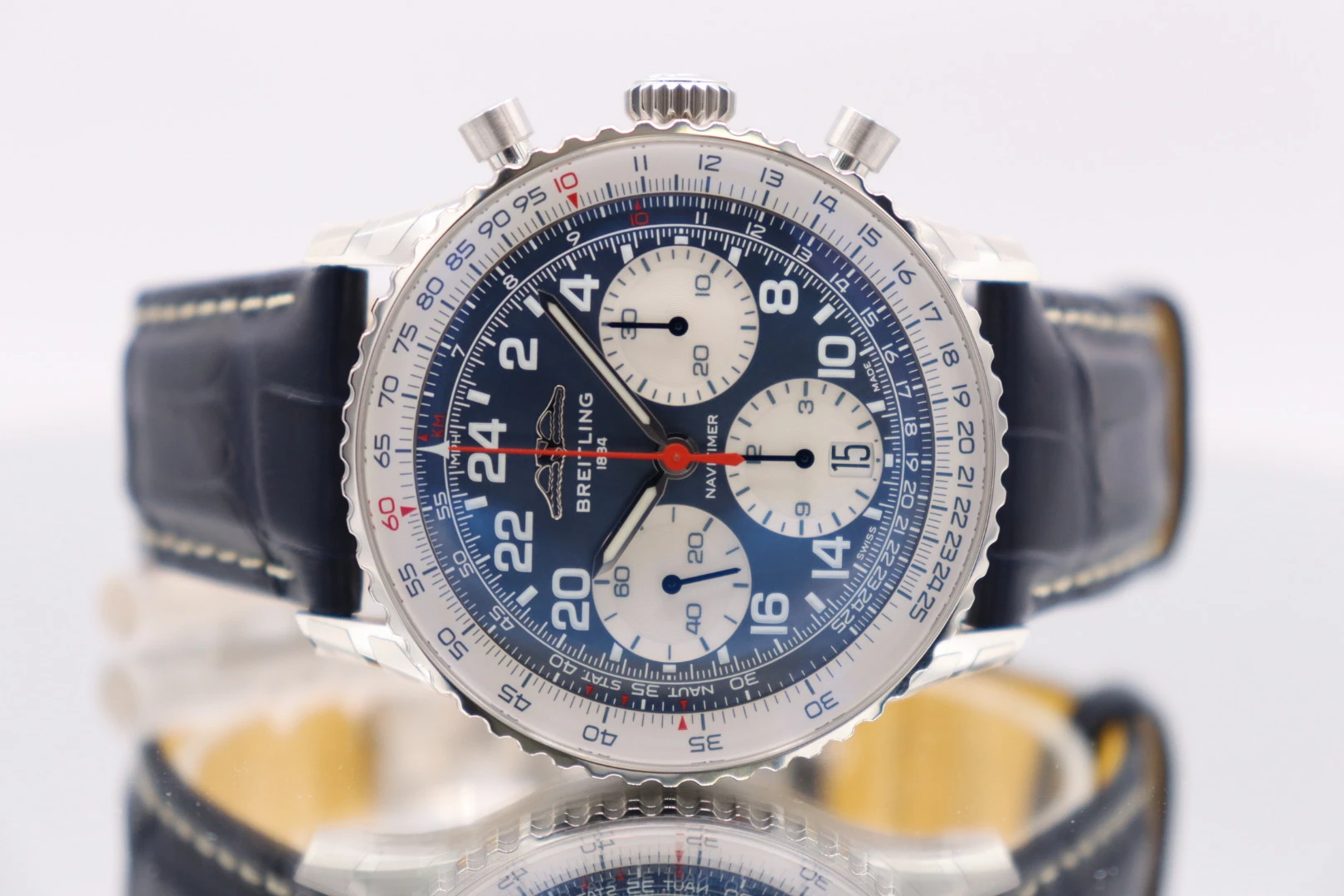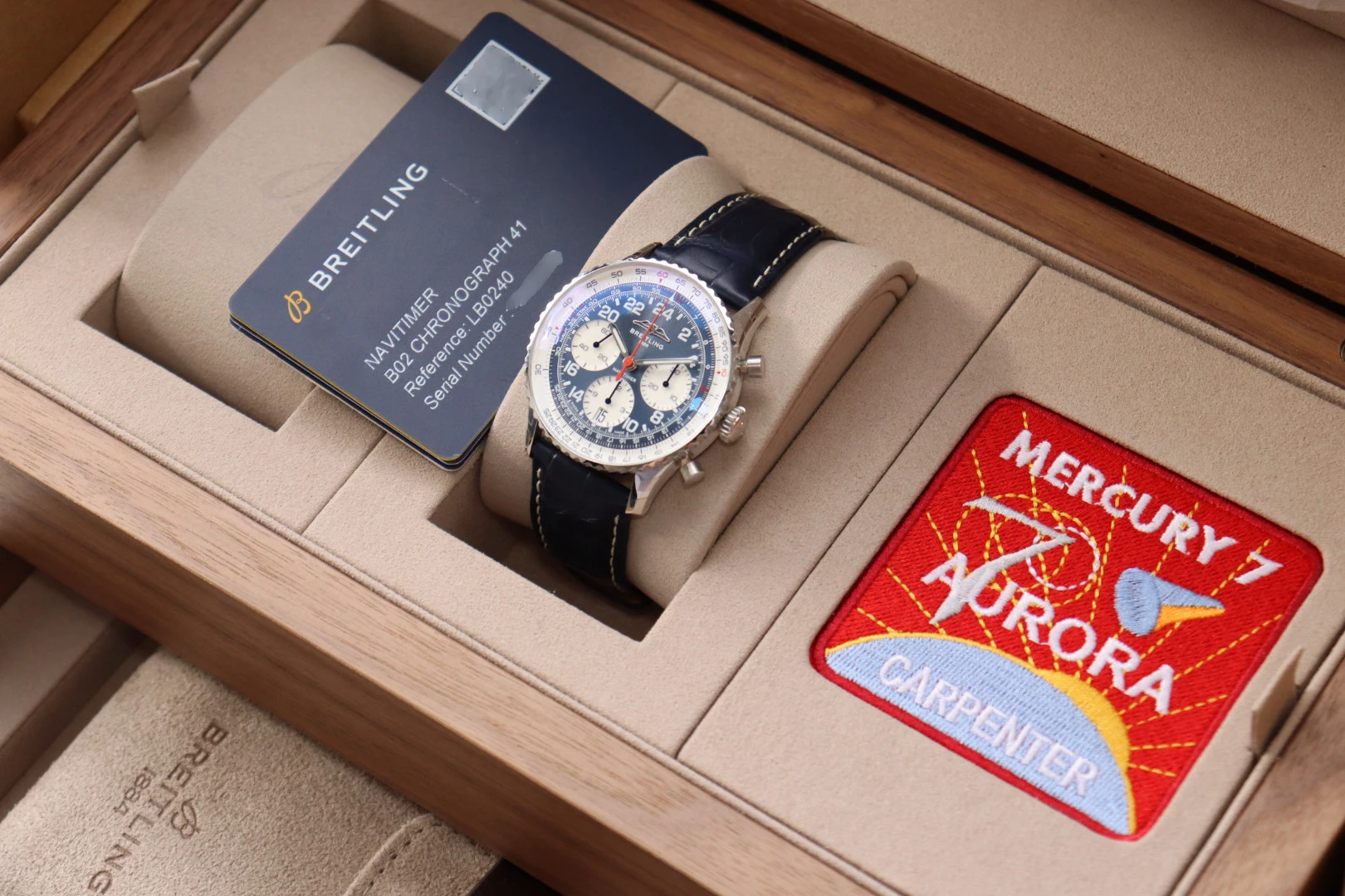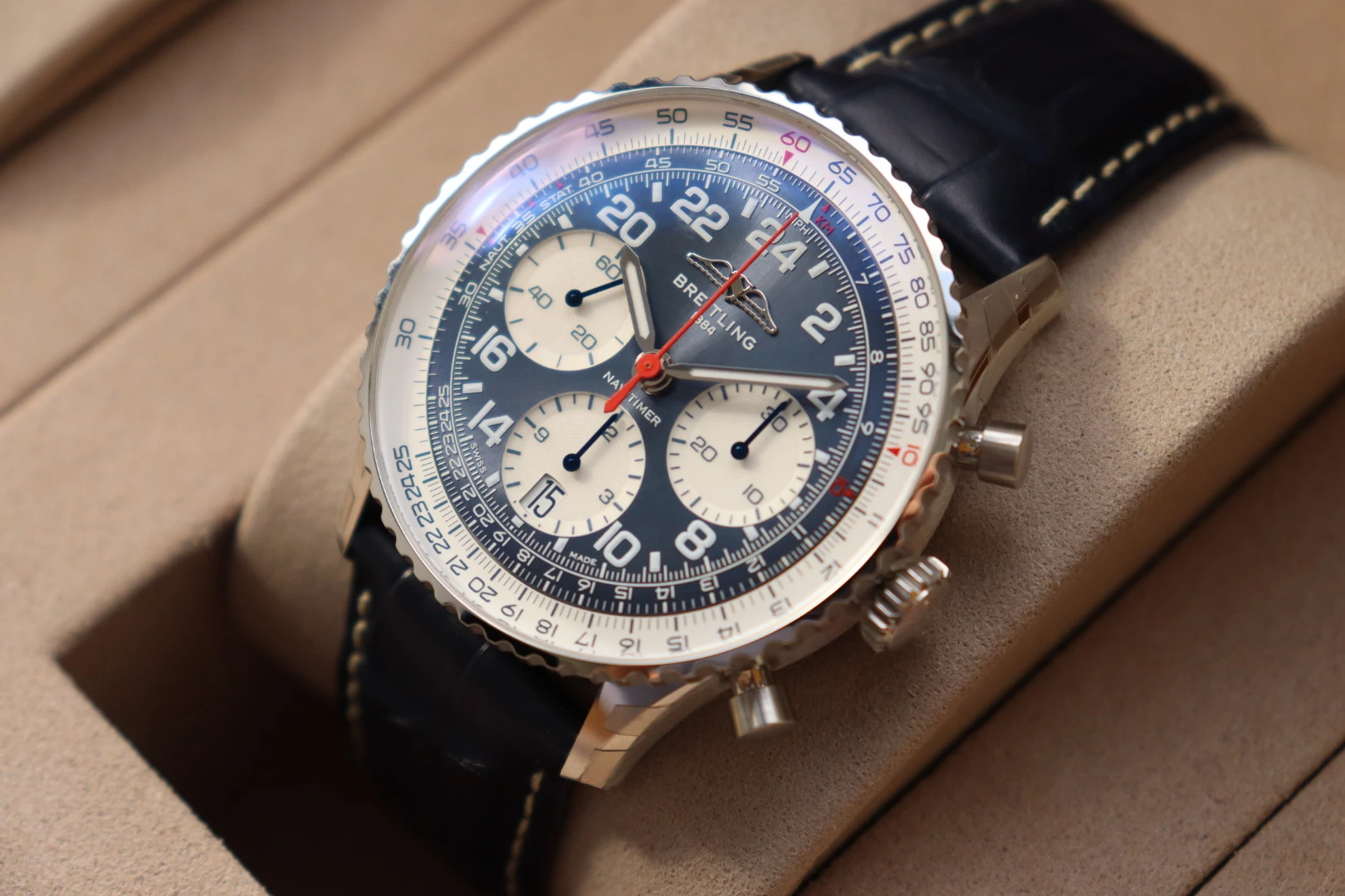 This Breitling Navitimer B02 is offered in excellent condition, supplied with its original box, papers, Watch Register verification, and backed by a 12-month warranty, making it an exclusive opportunity for collectors seeking a platinum edition of Breitling’s legendary chronograph.