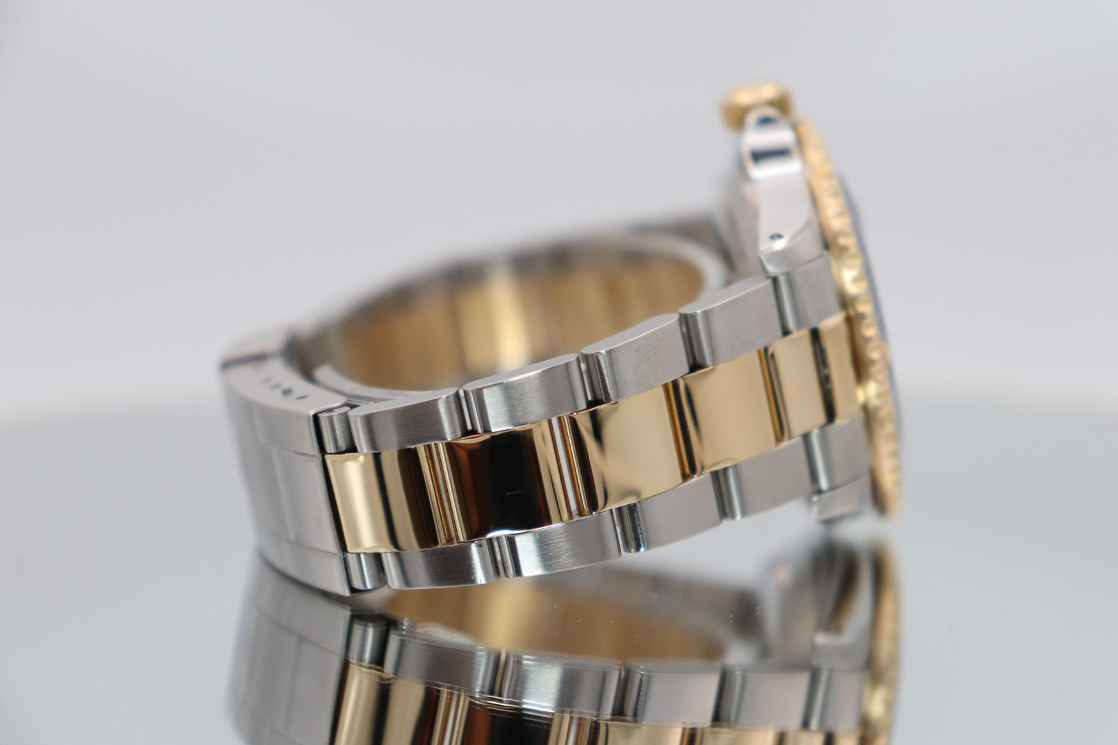 This circa 2000 example features a 40mm stainless steel case paired with an 18ct yellow gold and steel Oyster bracelet. The aluminium (pre-ceramic) bezel enhances its vintage appeal, while maintaining the robust functionality expected from a professional dive watch.