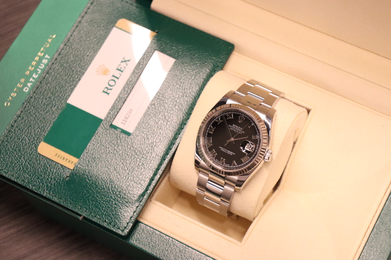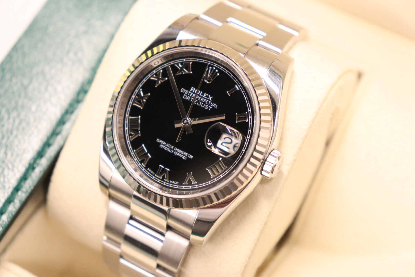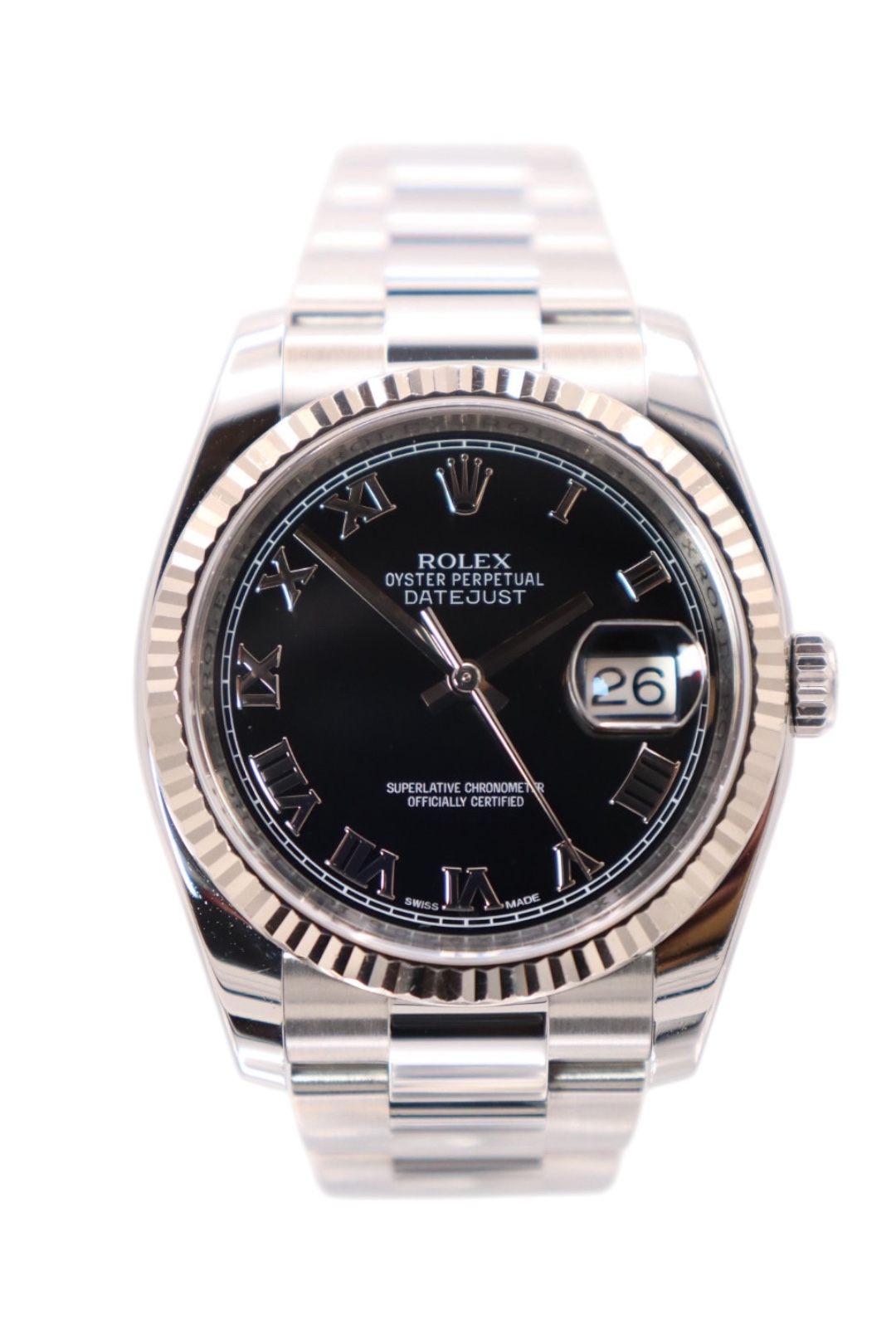 Rolex Datejust 36 Ref. 116234 – Black Roman Dial – Steel & White Gold – 2018 – Box & Papers