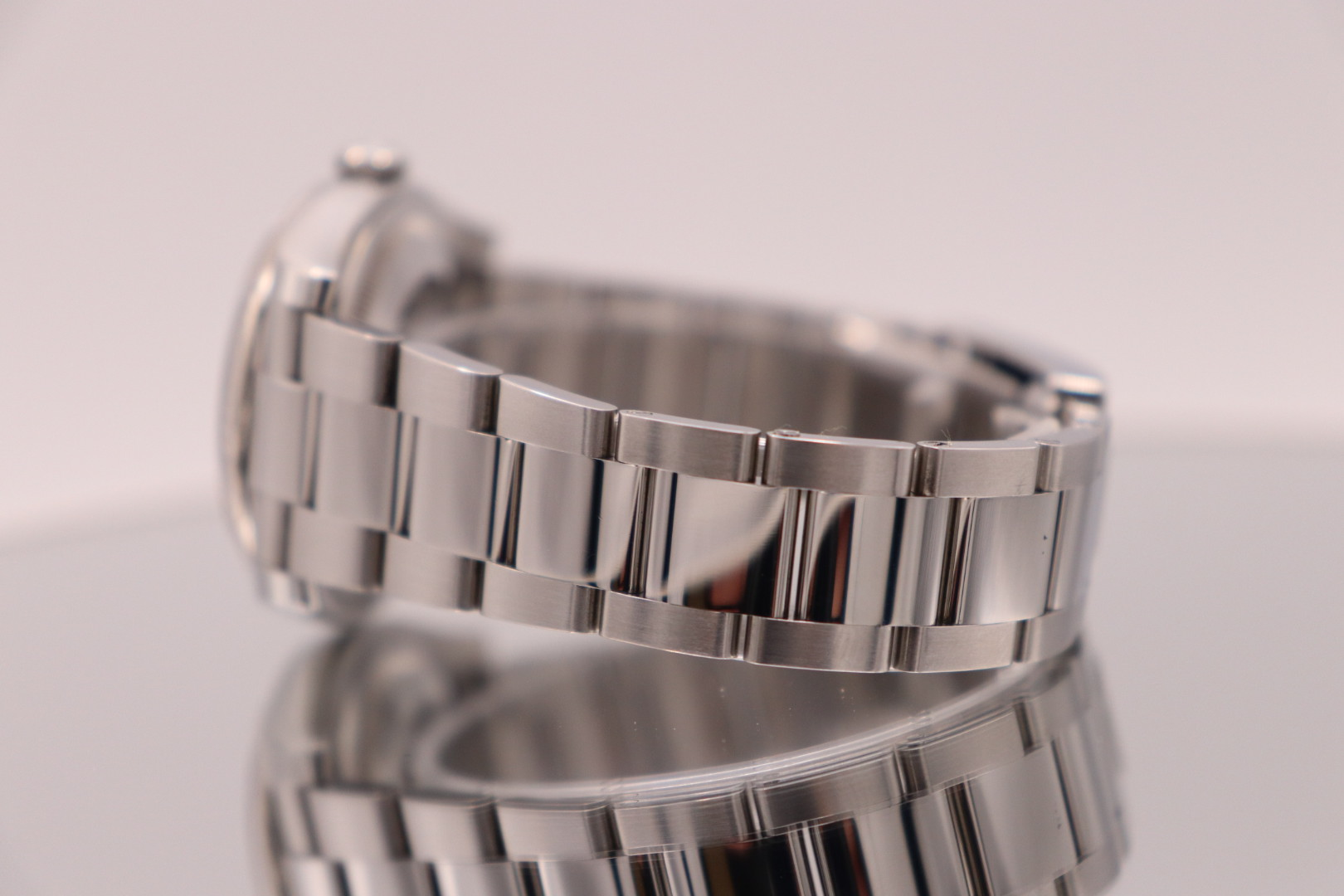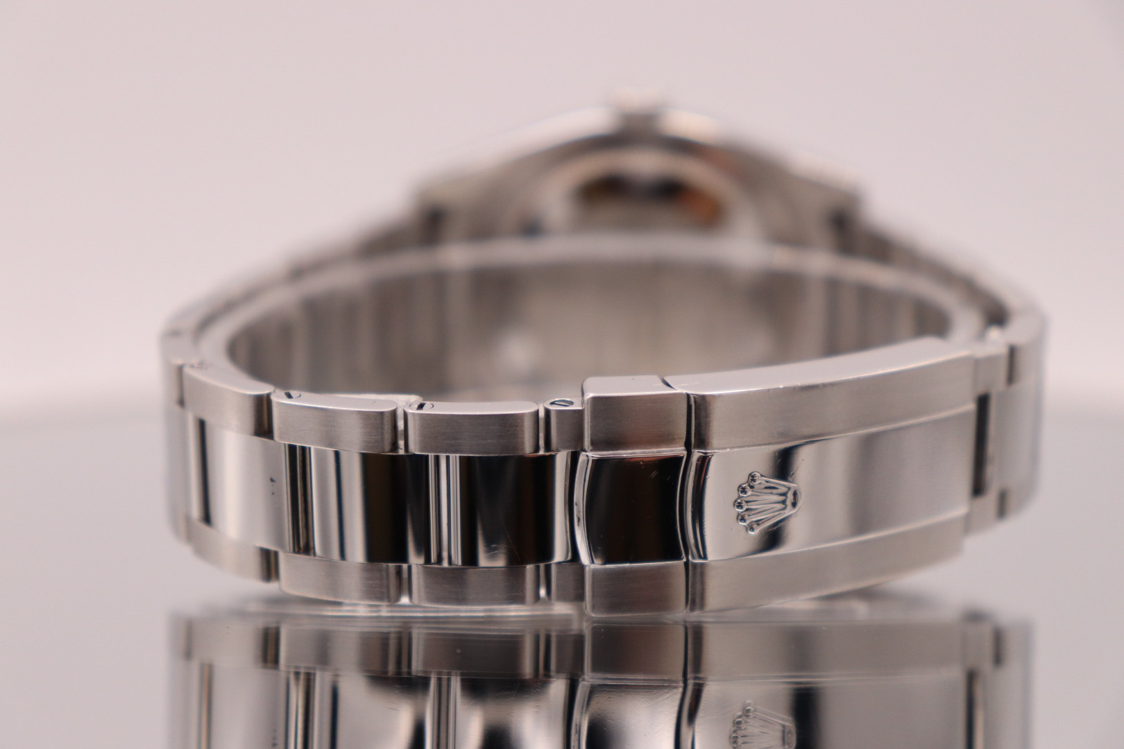 Protected by a scratch-resistant sapphire crystal with Cyclops magnifier over the date, the watch ensures both durability and practicality. The stainless steel Oyster bracelet completes the design, delivering comfort and robustness for daily wear.