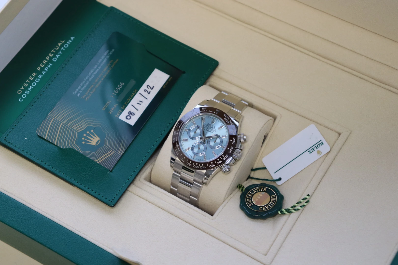 Rolex Daytona – Platinum with Ice Blue Diamond Dial (2022) – Factory Warranty to November 2027
