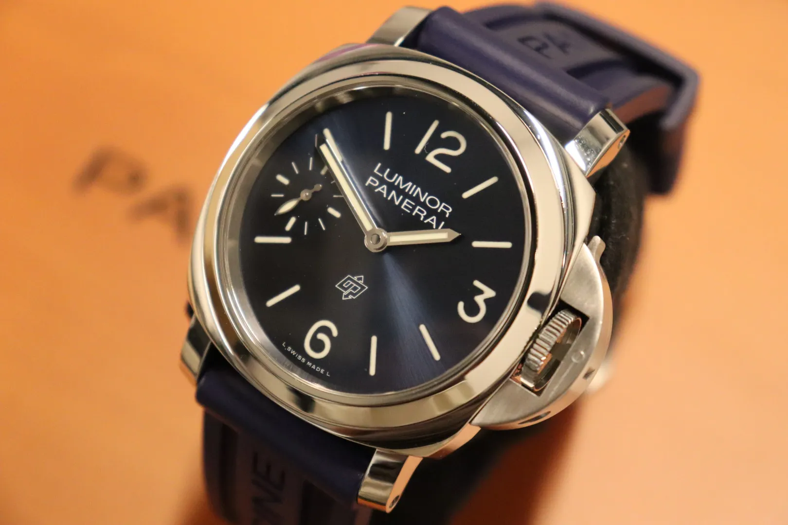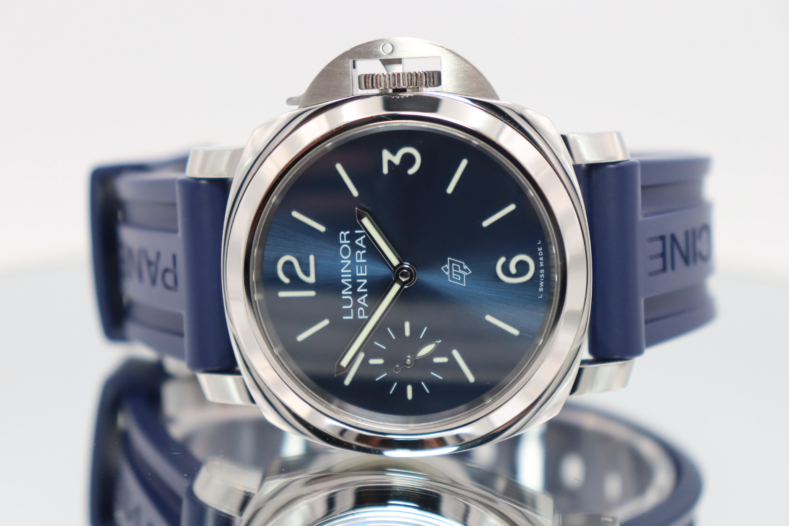 This 2020 example features a 44mm stainless steel case with the signature crown guard bridge, a defining element of the Luminor collection. The vibrant blue dial is fitted with a combination of baton and Arabic numeral hour markers, enhanced with luminous material for excellent visibility in all conditions.