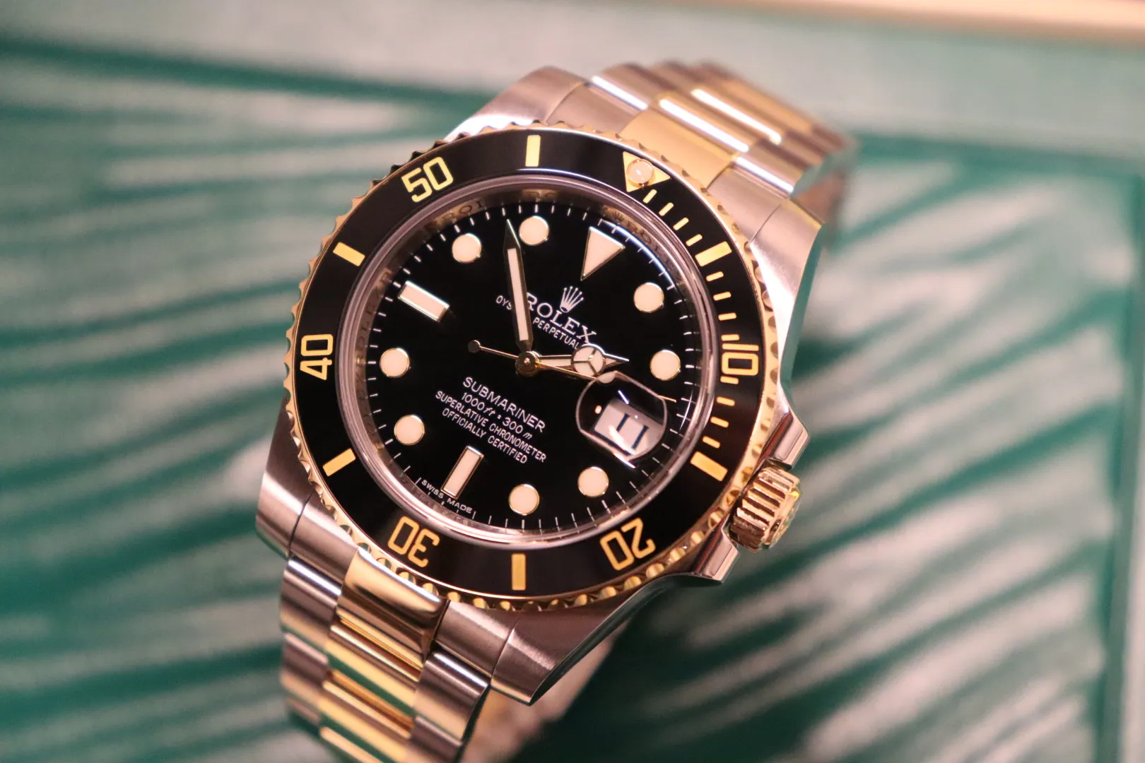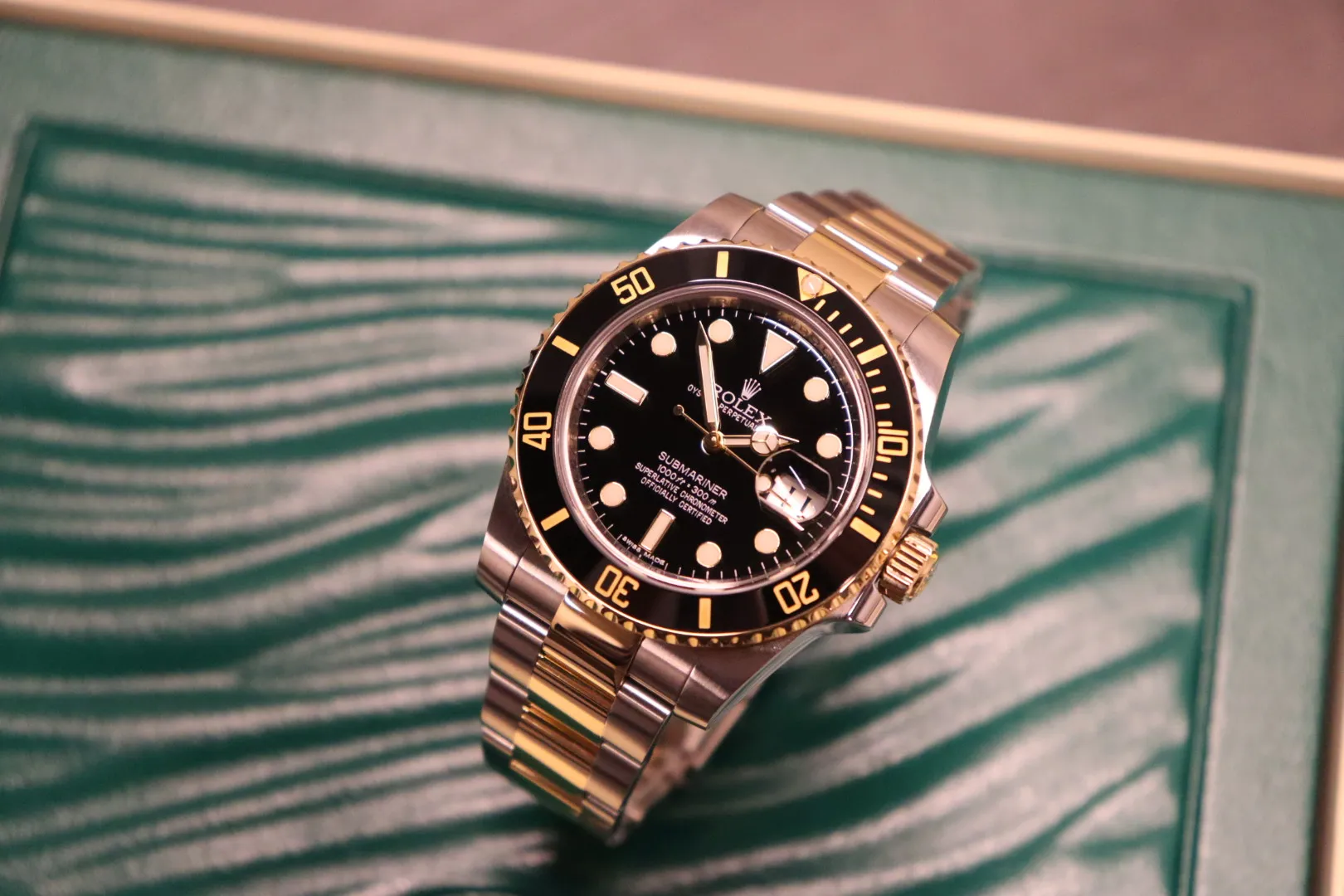A modern classic, the Rolex Submariner Date (Ref. 116613LN) combines robust dive watch functionality with refined two-tone styling. This reference is highly sought after for its ceramic bezel and updated case design, offering both durability and contemporary appeal.