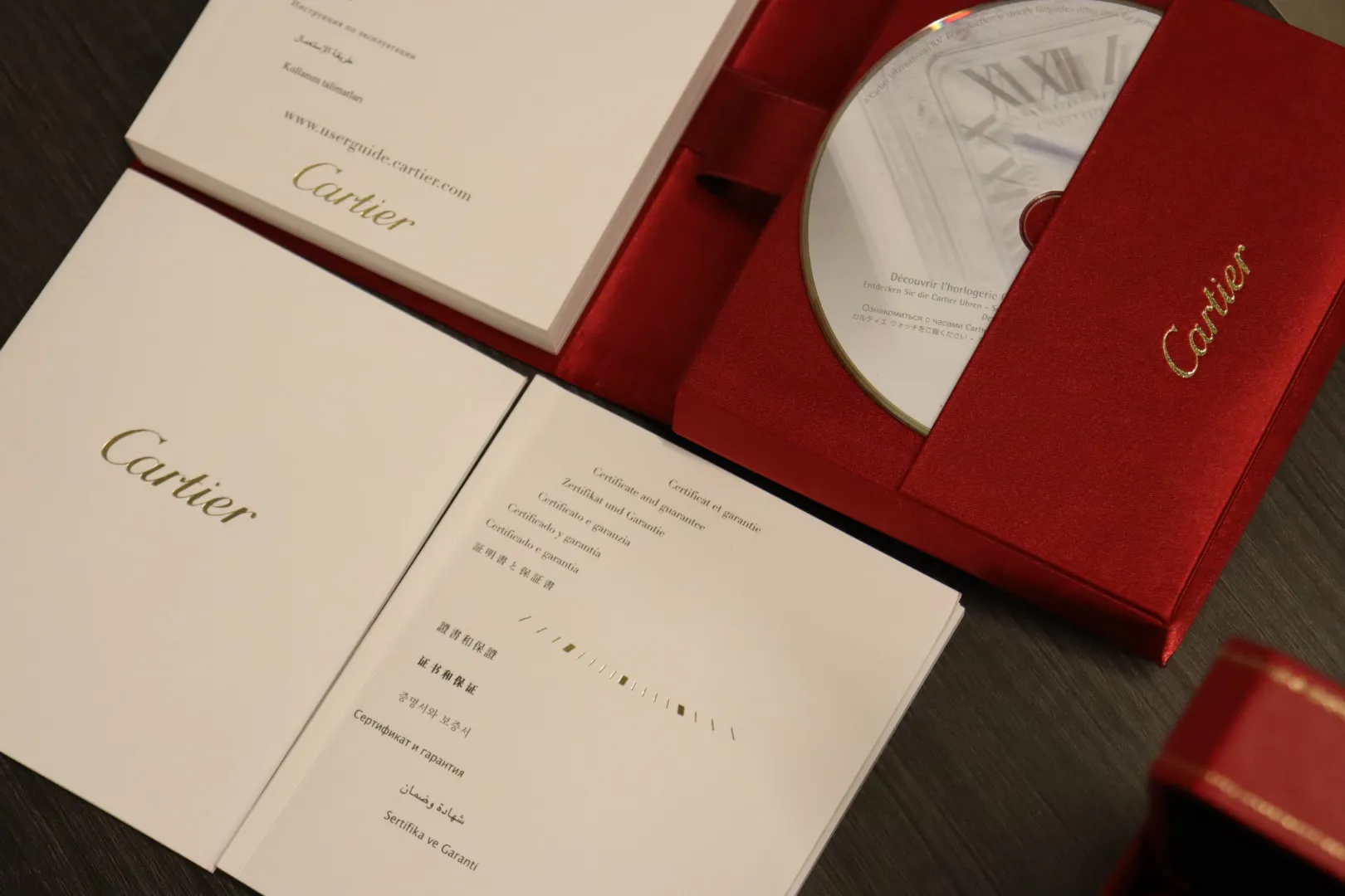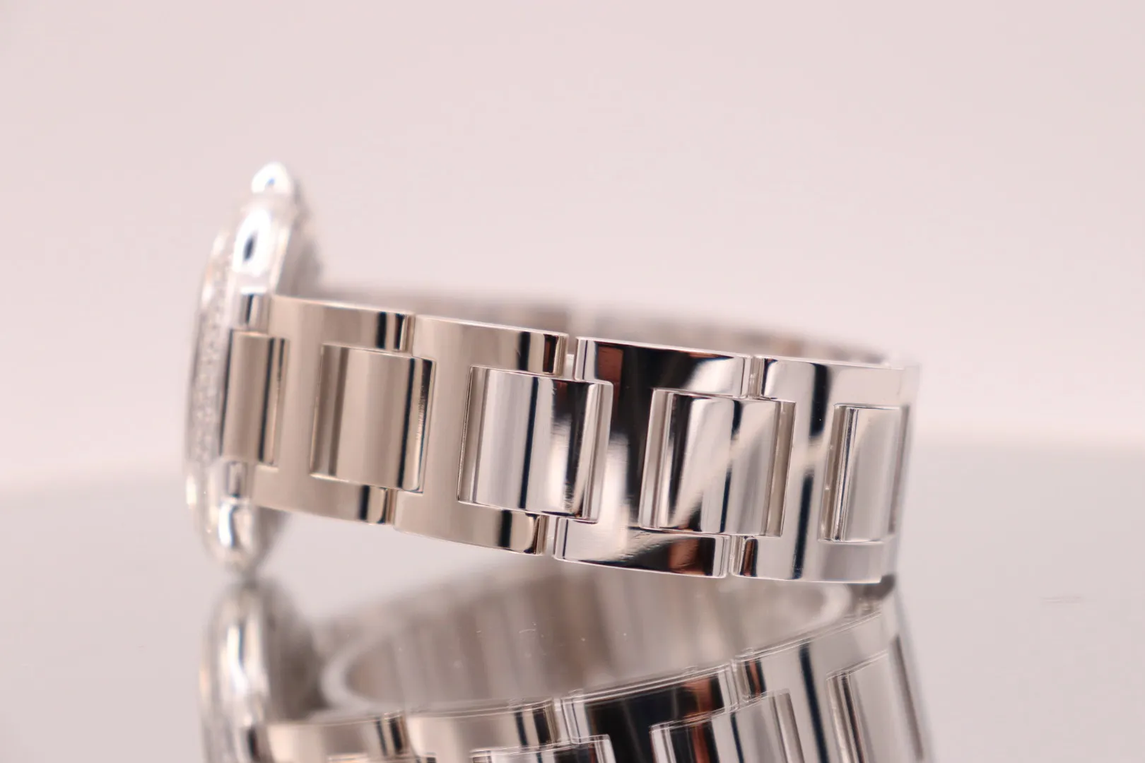This 2010 example features a 36mm case crafted entirely from 18ct white gold, paired with a matching white gold bracelet for a seamless and high-end finish. The diamond-set bezel enhances the watch’s presence, adding a sophisticated brilliance while maintaining Cartier’s understated elegance.