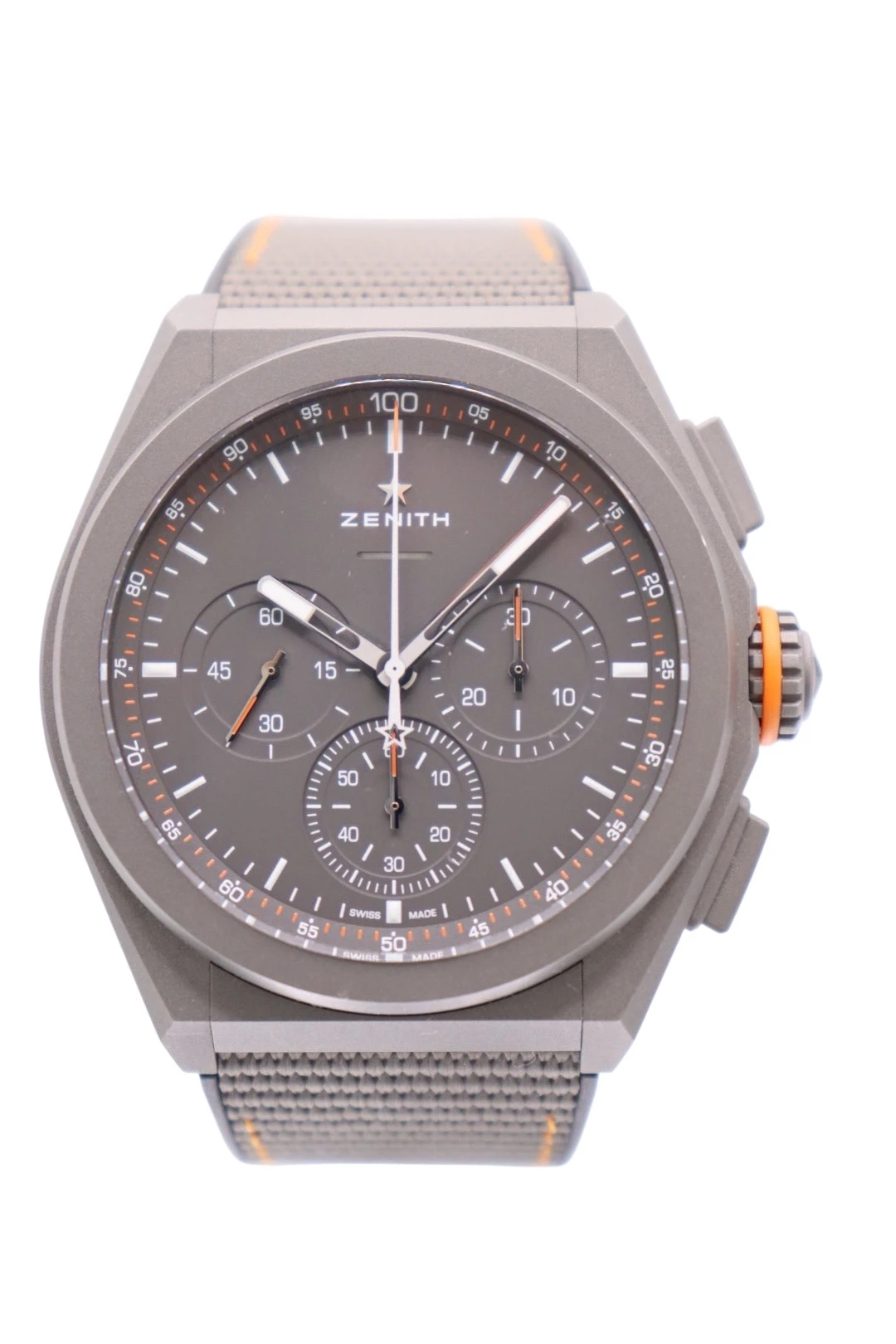 ChronographA cutting-edge expression of avant-garde watchmaking, the Zenith Defy El Primero showcases the legendary high-frequency movement that cemented Zenith’s status in horological history. Crafted in lightweight titanium, this bold 44mm model combines extreme precision with contemporary design, delivering performance at the highest level.The grey dial with baton indexes reveals the technical soul of the watch, embodying Zenith’s fusion of engineering and modern aesthetics. Beneath the sapphire crystal lies the iconic El Primero chronograph movement, capable of measuring time to 1/100th of a second — one of the fastest and most legendary calibres ever produced.Finished on a durable rubber strap, this Defy model offers exceptional comfort, durability, and sport-luxury appeal, perfectly suited for both daily wear and professional settings.