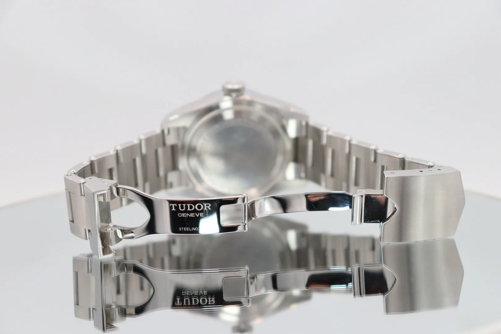 This 2025 example features a 39mm stainless steel case paired with a pre-ceramic bi-directional bezel, giving the watch a refined yet sporty aesthetic. The crisp white dial is fitted with rounded luminous hour markers and Tudor’s signature snowflake hands, offering excellent legibility and strong wrist presence. Protected by a scratch-resistant sapphire crystal, the Black Bay GMT is built to withstand daily wear while maintaining a polished finish. The stainless steel bracelet adds durability and completes the cohesive design.